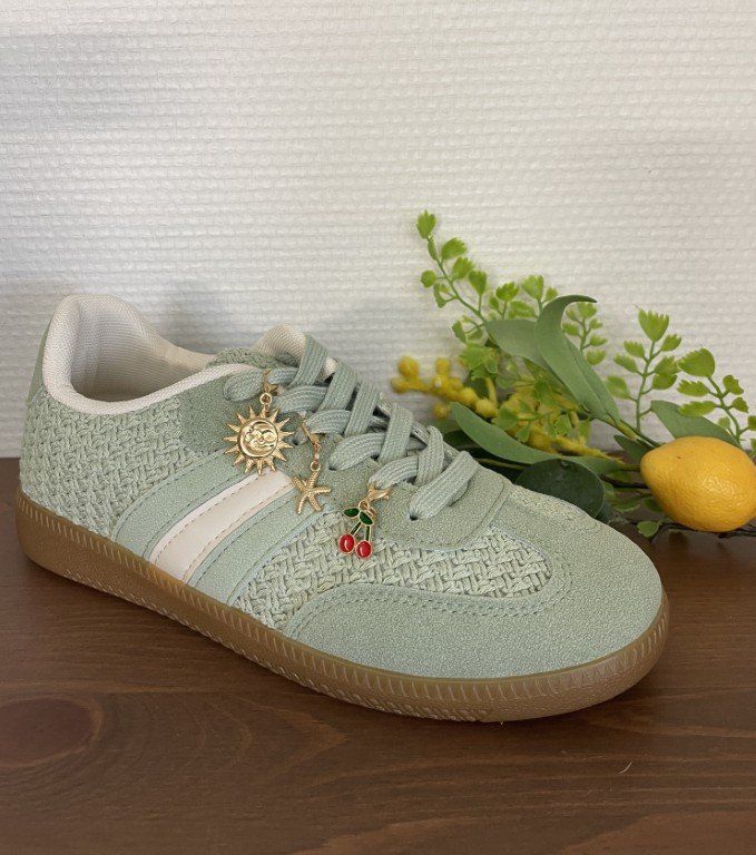 Craquez pour cette magnifique paire de baskets à lacets. Bijous amovibles, façon charms.
