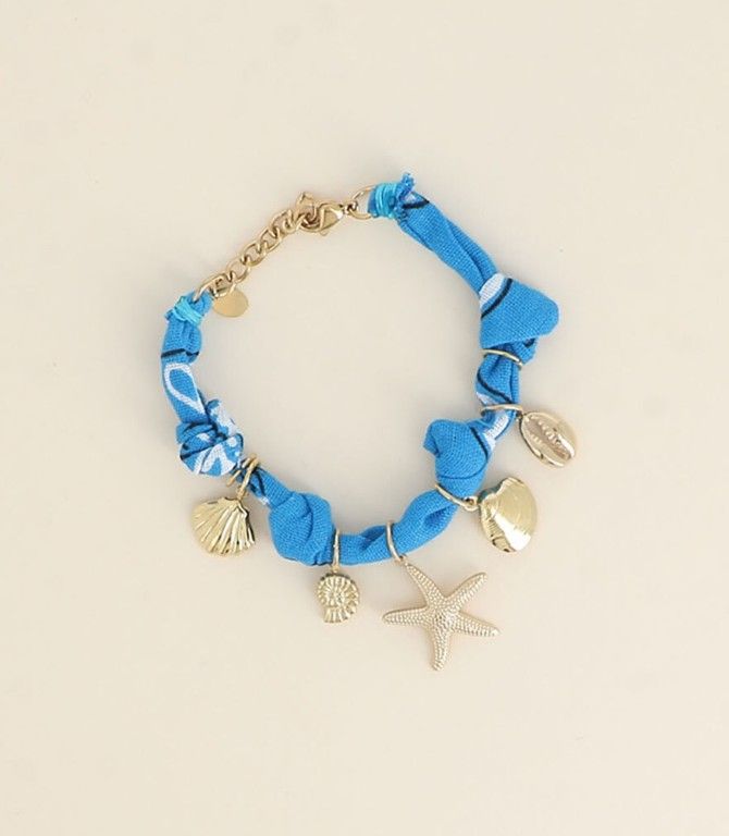 Superbe bracelet tendance printemps/été, composé d'un tissu tressé avec une chaîne inoxydable.