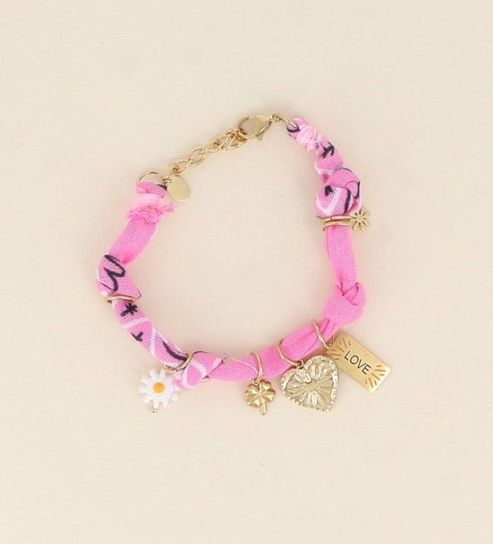 Superbe bracelet tendance printemps/été, composé d'un tissu tressé avec une chaîne inoxydable.
