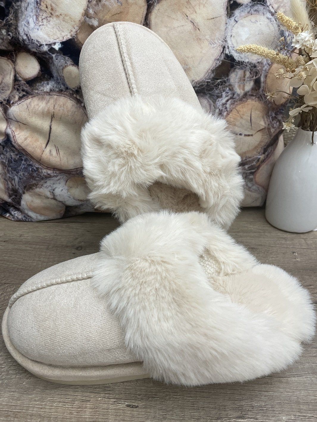 Chaussons fourrés ouverts BEIGE
