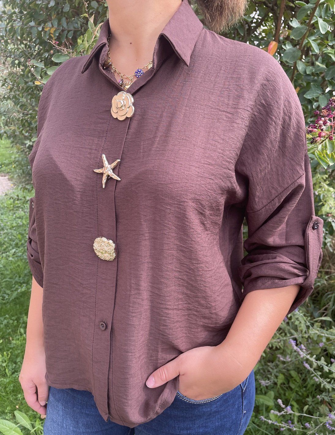 Chemise à manches longues, retroussables par patte boutonnage. Petits boutons.