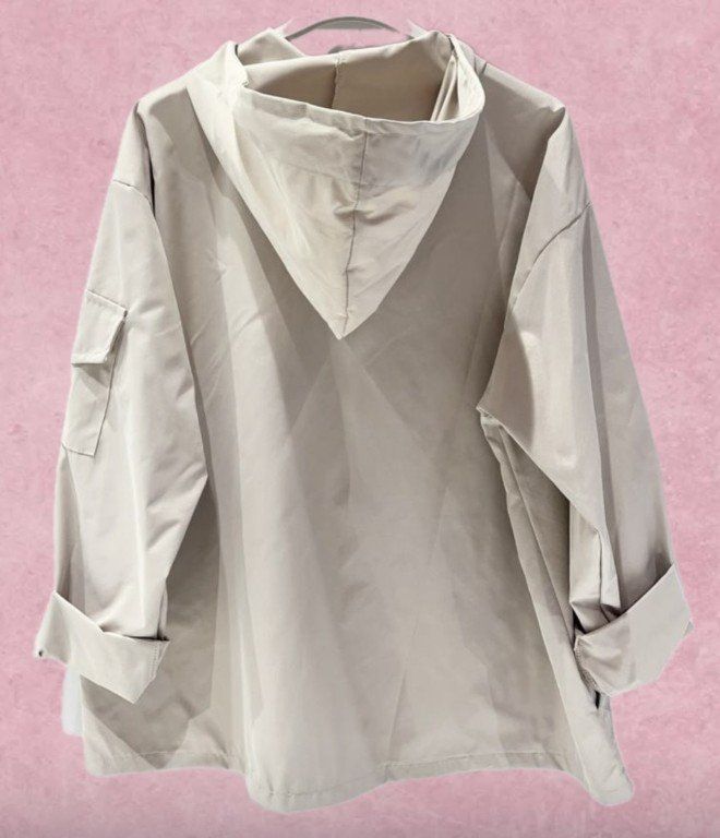 Coupe-vent à capuche et manches longues. Fermeture éclair.