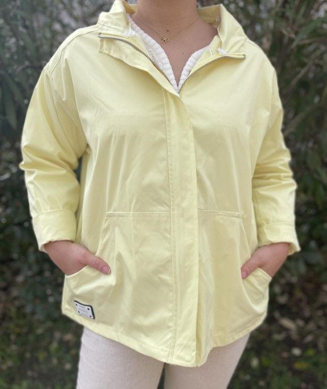 Coupe-vent à capuche et manches longues. Fermeture éclair.