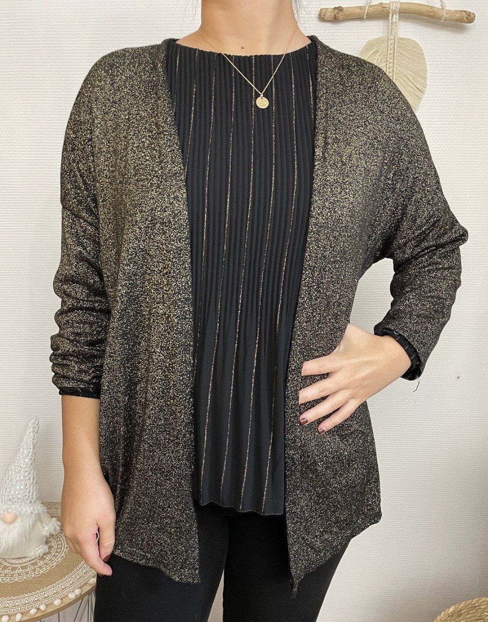 Gilet fin ouvert à manches 3/4 légèrement chauve-souris.