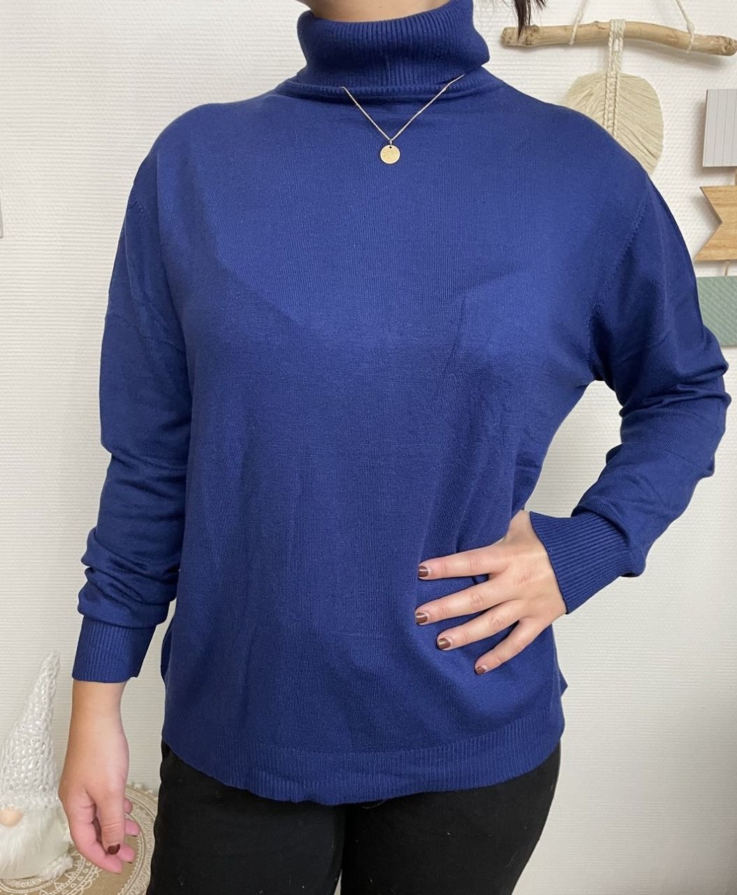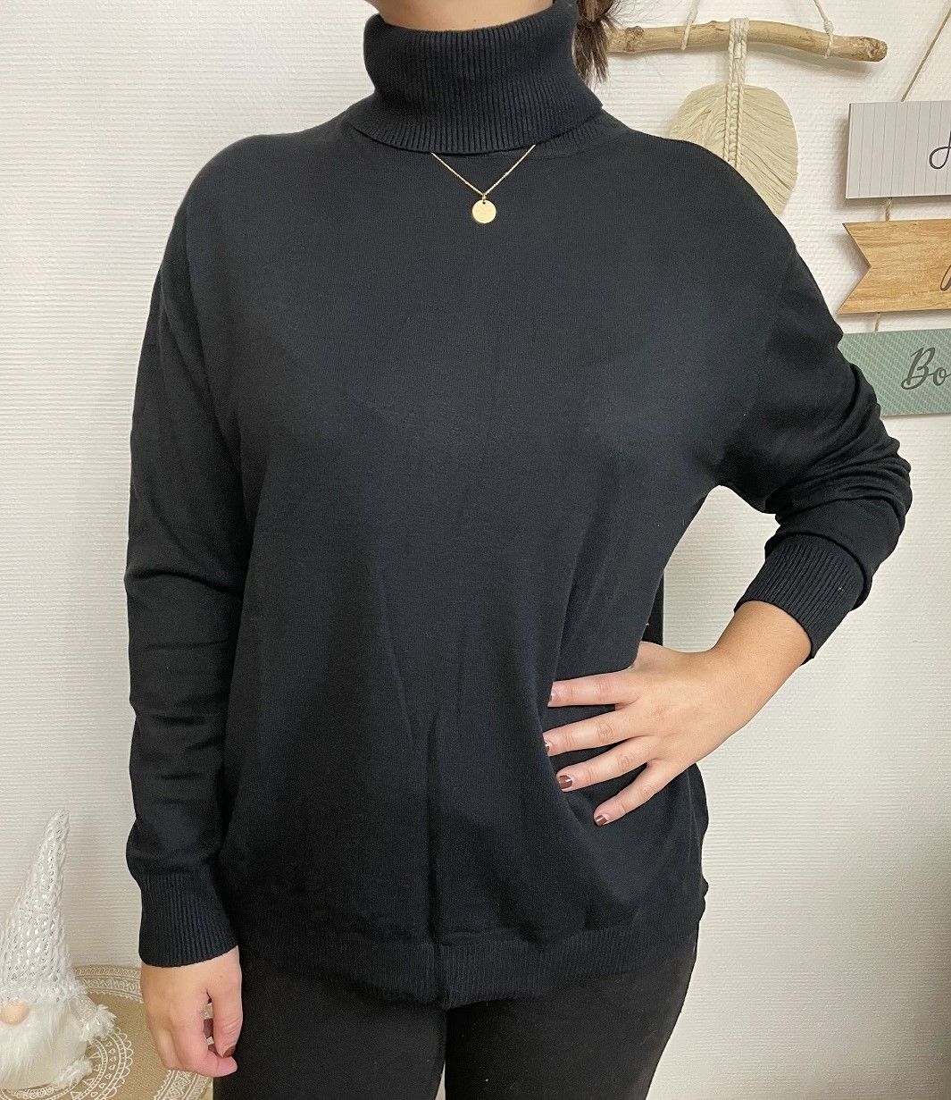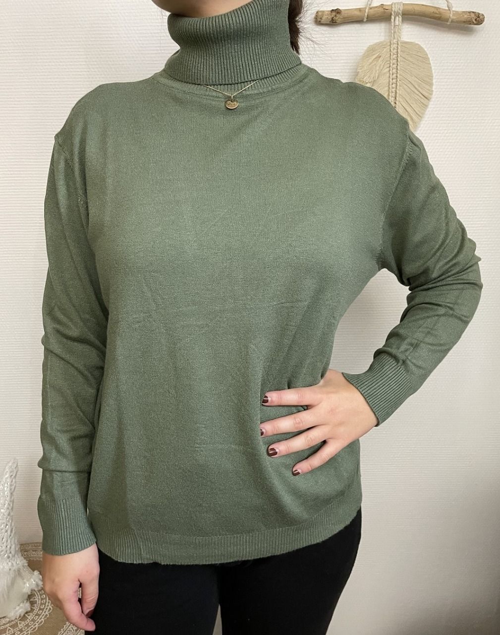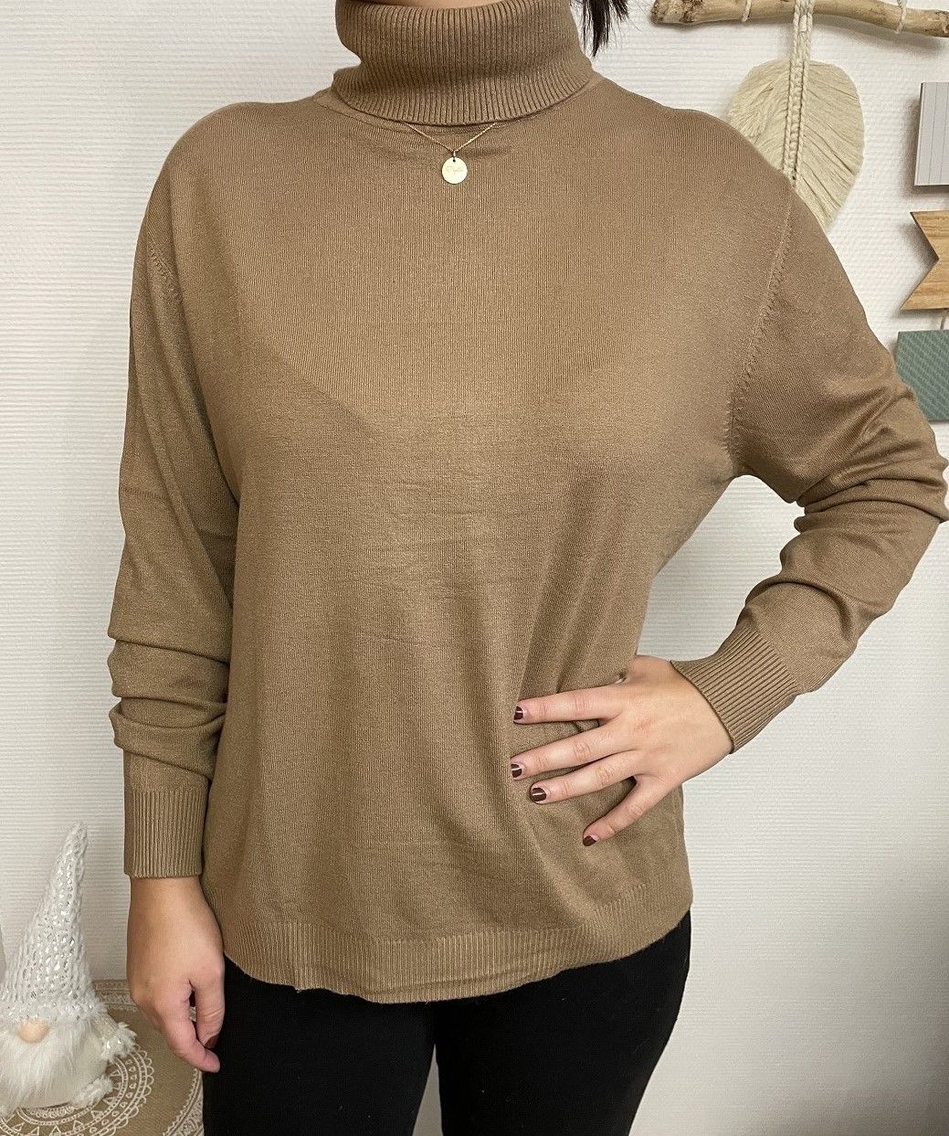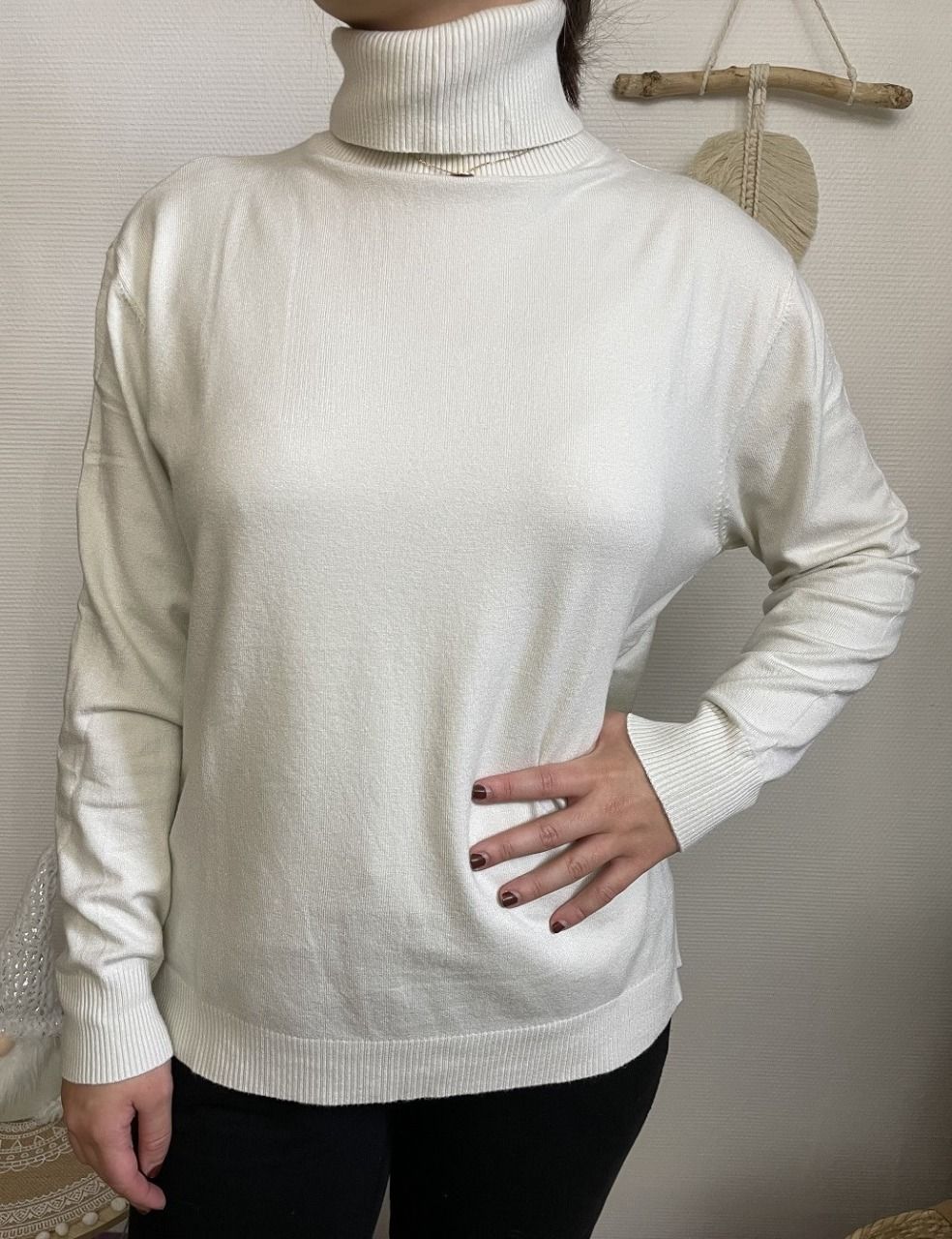 Pull à manches longues et col roulé, très doux, ne pique pas, ne gratte pas.