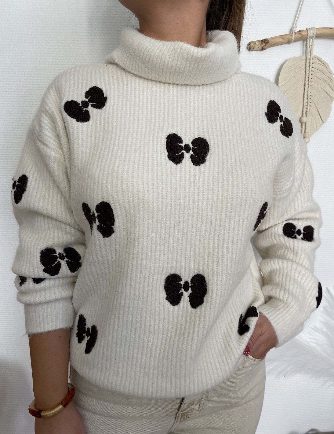 Magnifique pull col roulé à manches longues avec un imprimé noeuds. Uni au dos.