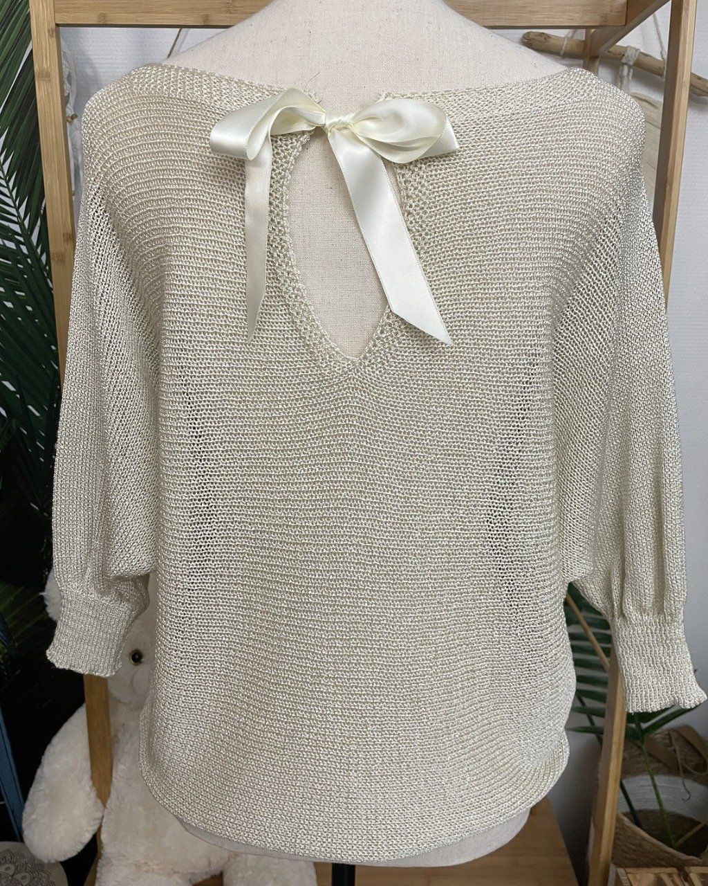 Petit pull léger, fin avec un noeud satiné au dos, manches 3/4.