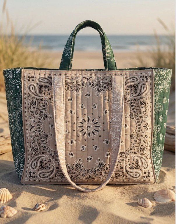 Superbe sac 100 % coton matelassé avec un bel imprimé bandana.