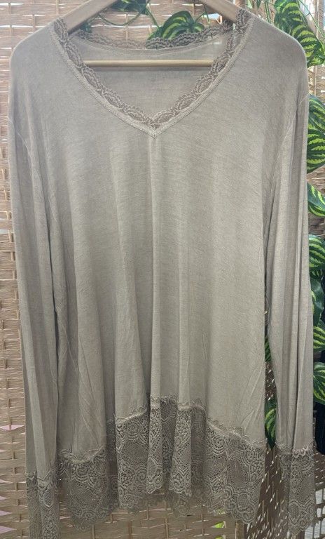Sous-pull à manches longues avec dentelle aux poignets, au bas et au col V.