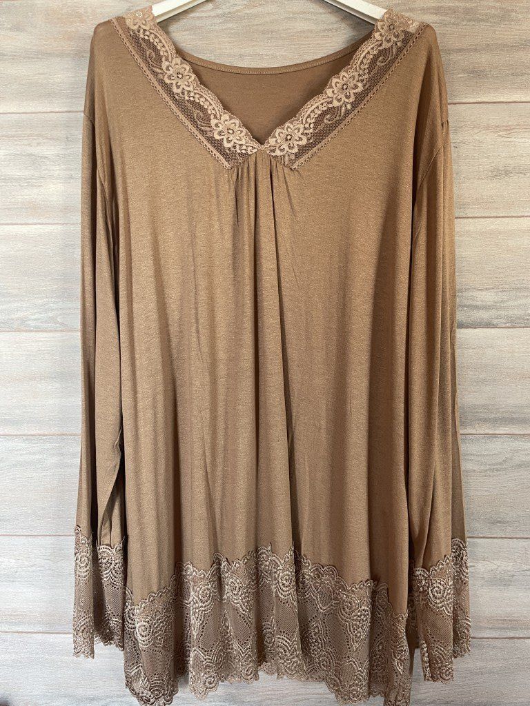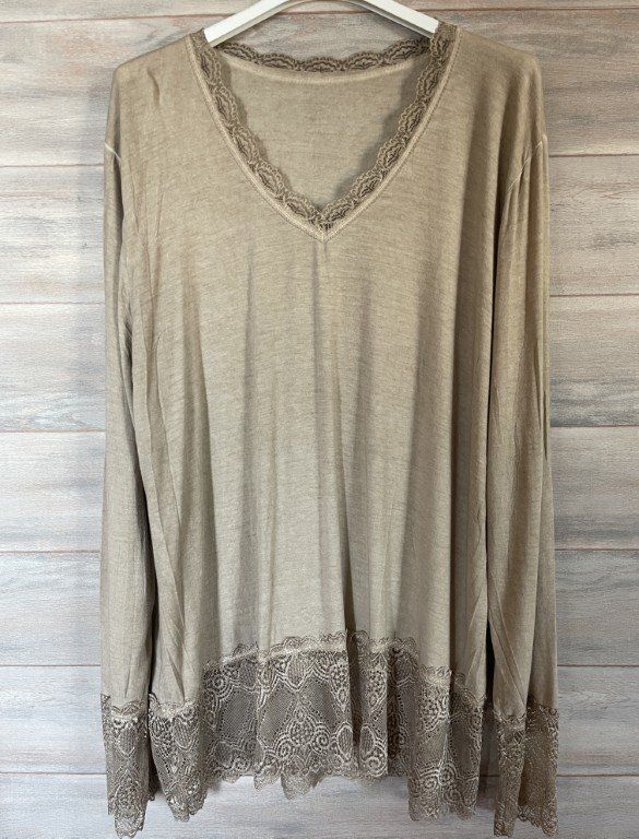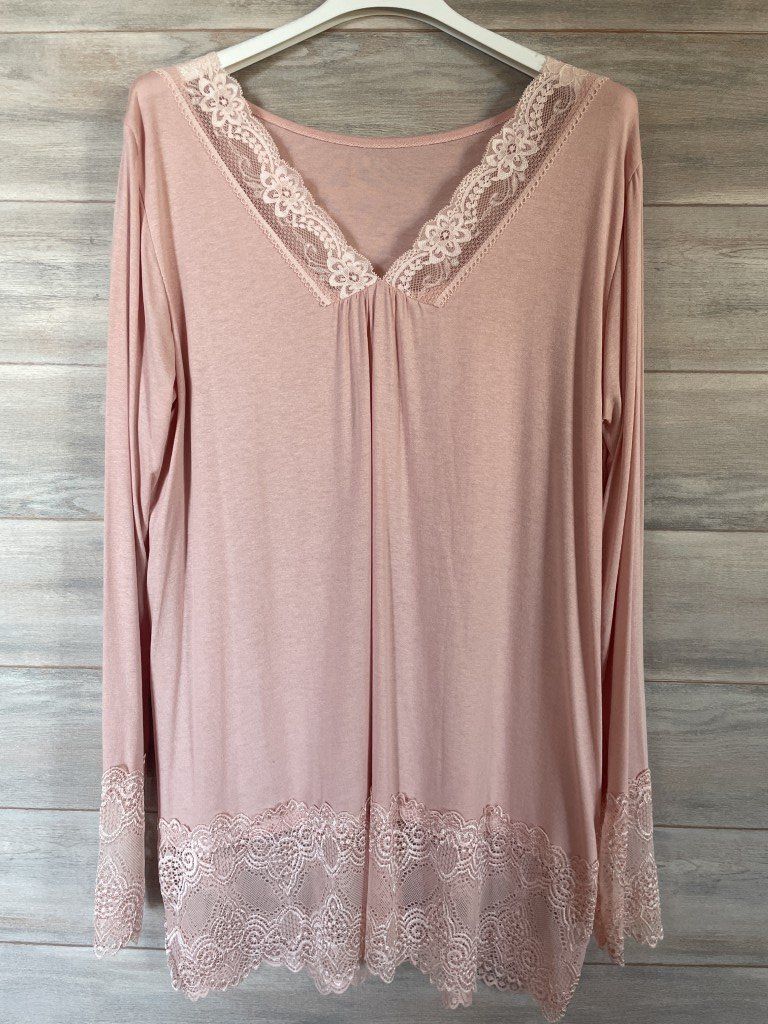 Sous-pull à manches longues avec dentelle aux poignets, au bas et au col V.