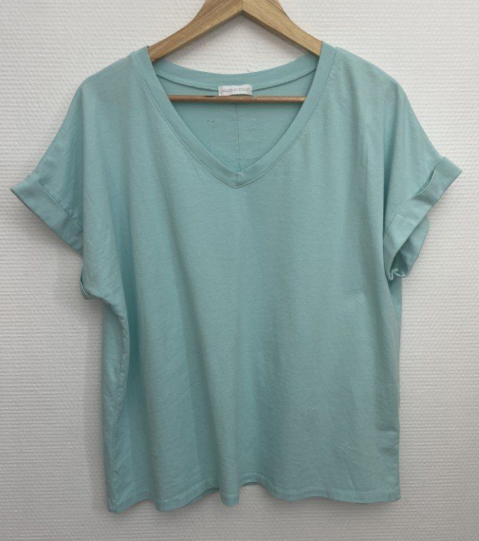 Tee-shirt à manches courtes, col V. Uni devant.