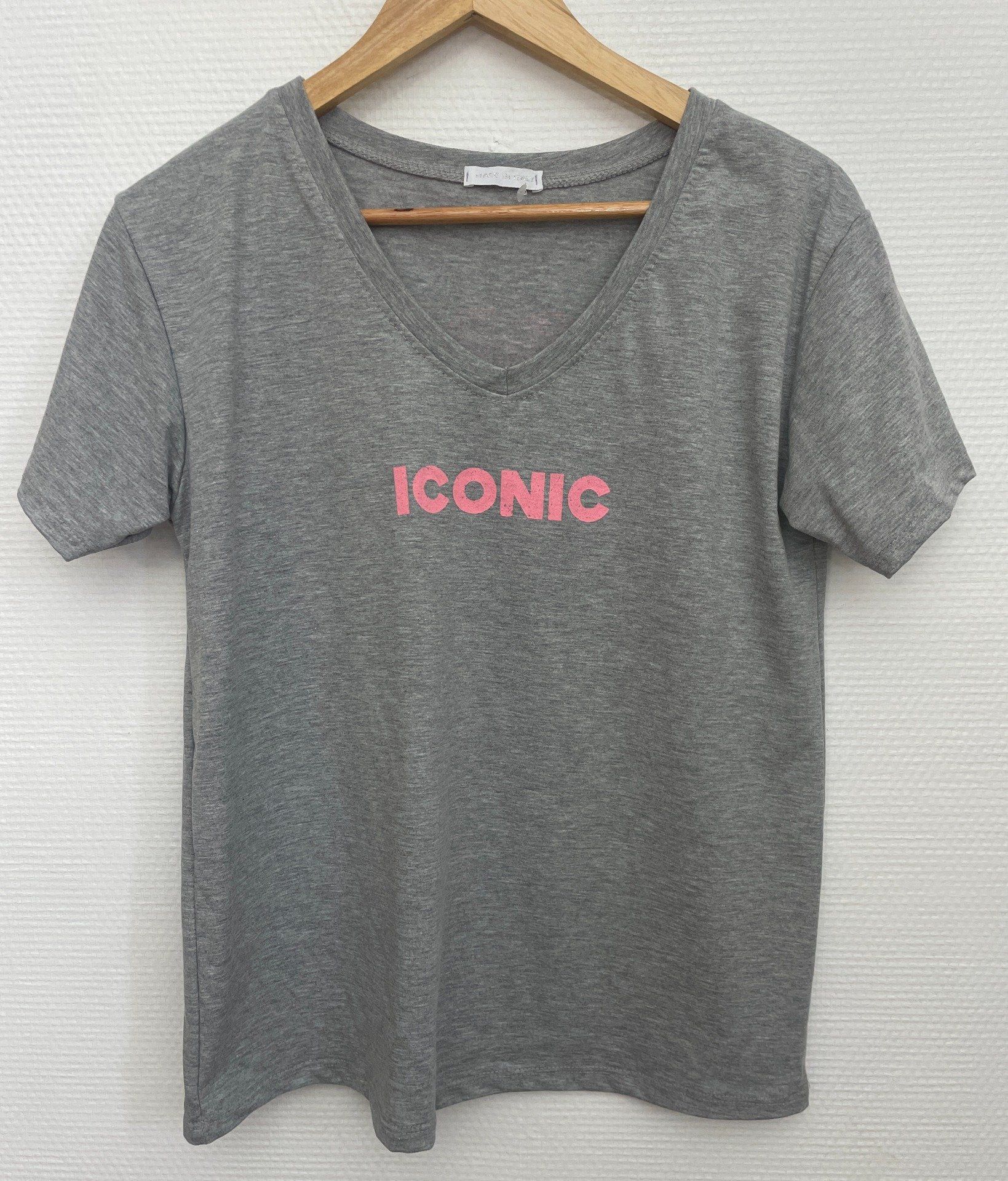 Tee-shirt à manches courtes, col V. Petite impression poitrine. Impression écritures dos.