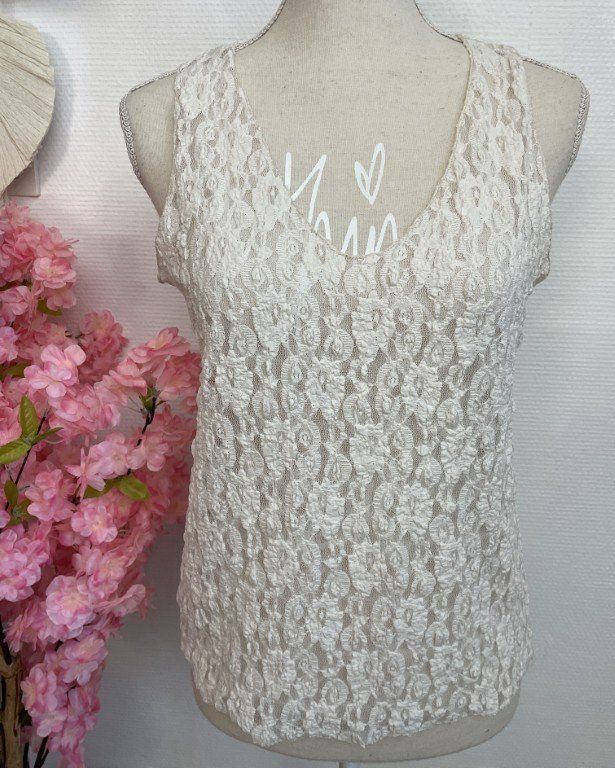Superbe top dentelle col V, hyper confortable.